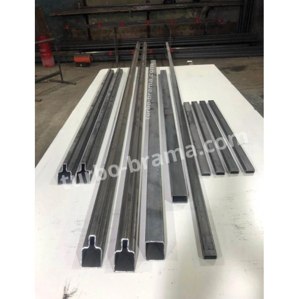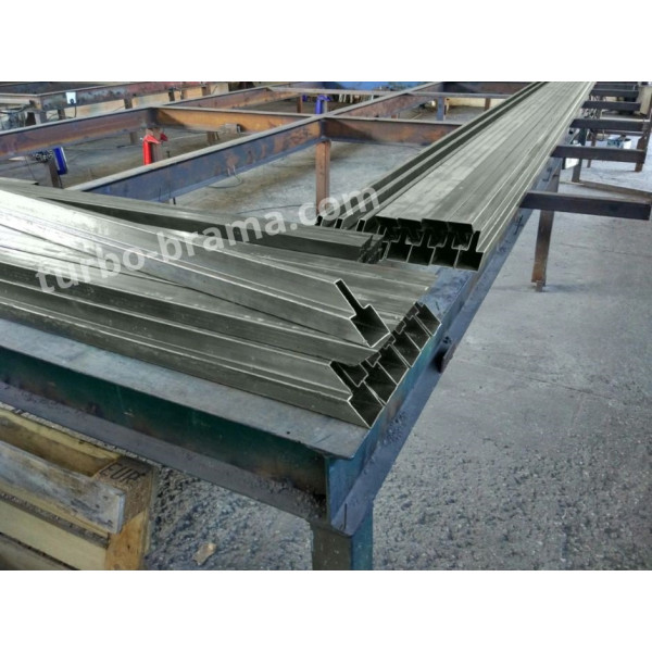 Варiант 2. Рiзати направляючу на 2 частини по 3 метри, ви отримаєте замовлення у себе в мiстi. Ми зазначимо мiсце розрізу, щоб при зварюваннi стикувати розріз вірно. Якщо Ви знаєте як влаштована конструкція воріт, то повинні розуміти, що направляюча приварюється до профiля нижньої частини каркасу воріт і стає единим цілим, в такому випадку навантаження на шов зварювання повністю відсутнє.