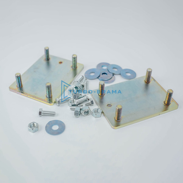 Основа пластини встановлюється на швелер та обварюється по периметру. На кожну з чотирьох шпильок діаметром 16 мм накручується по одній гайці, а потім нанизуються шайби (по 1 шт)
